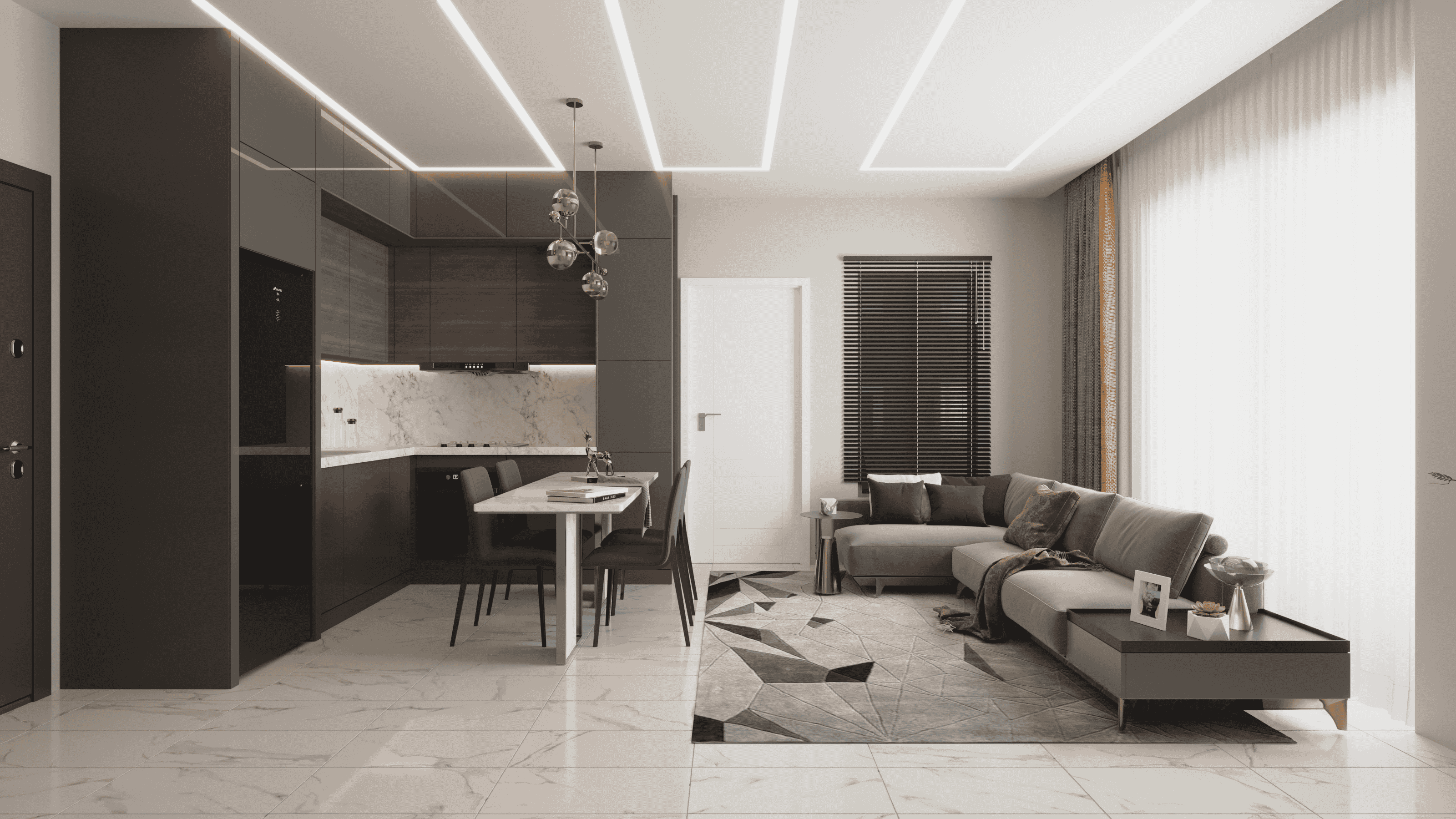49 adet 2+0 daire, modern ve fonksiyonel iç mekanlar.