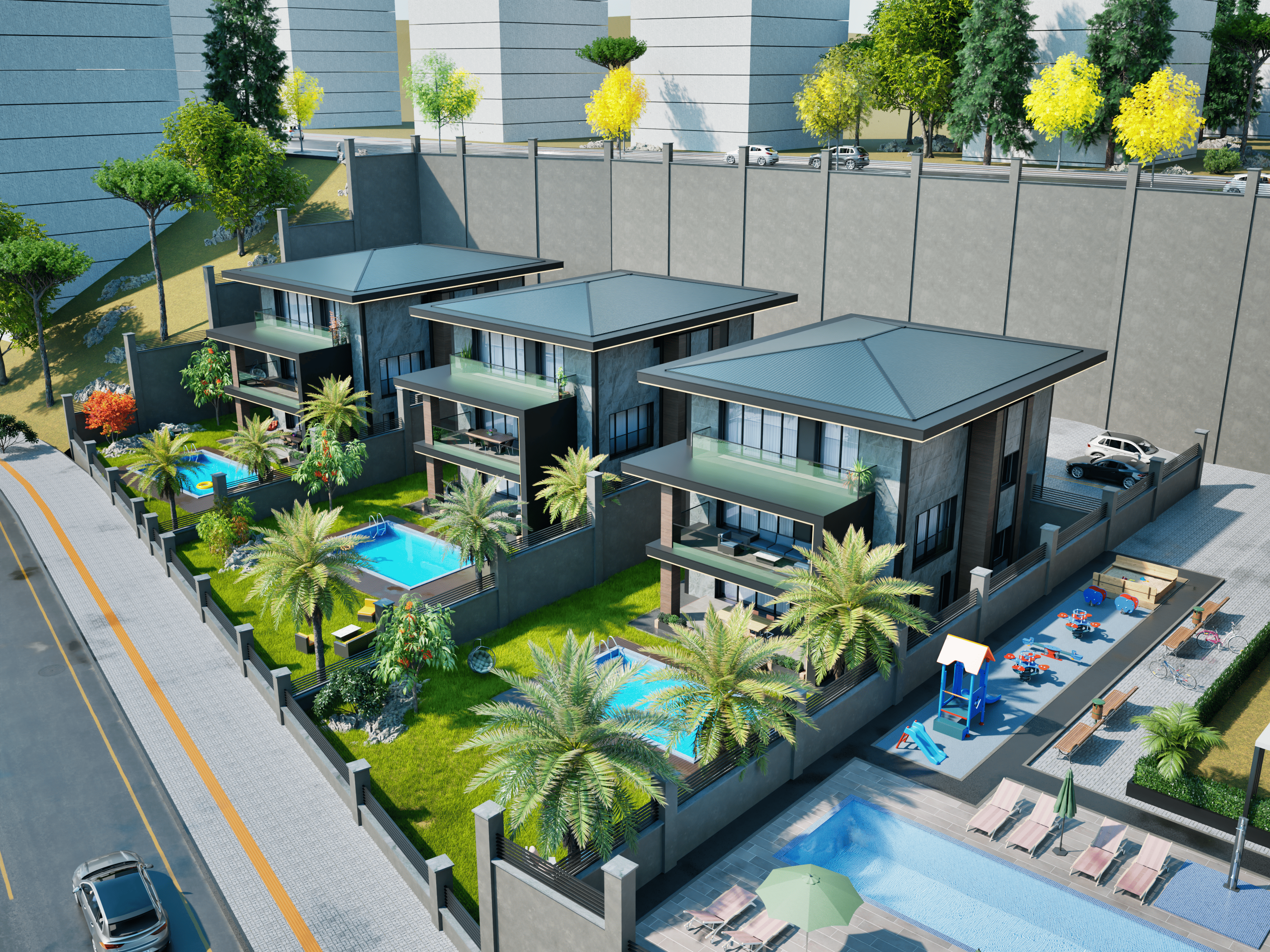 Toplamda 3 adet, 3 katlı villa, her biri 450 m² brüt alana sahip ve kendine ait geniş bahçeleri, açık yüzme havuzları ve peyzajlarıyla dikkat çekiyor. Her villa, doğayla iç içe bir yaşam vaat ederken, sakinlerine müstakil bir yaşam alanı sunuyor. Bu villalar, sade lüks ve fonksiyonel tasarımın mükemmel bir birleşimi.